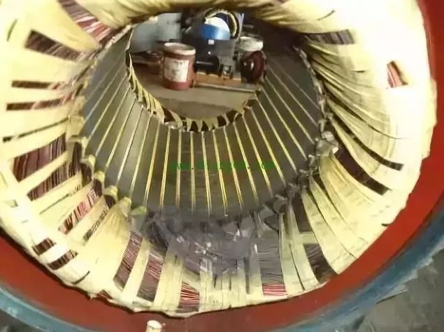 繞組全部變黑色,端部扎帶變色并且變脆甚至斷裂。